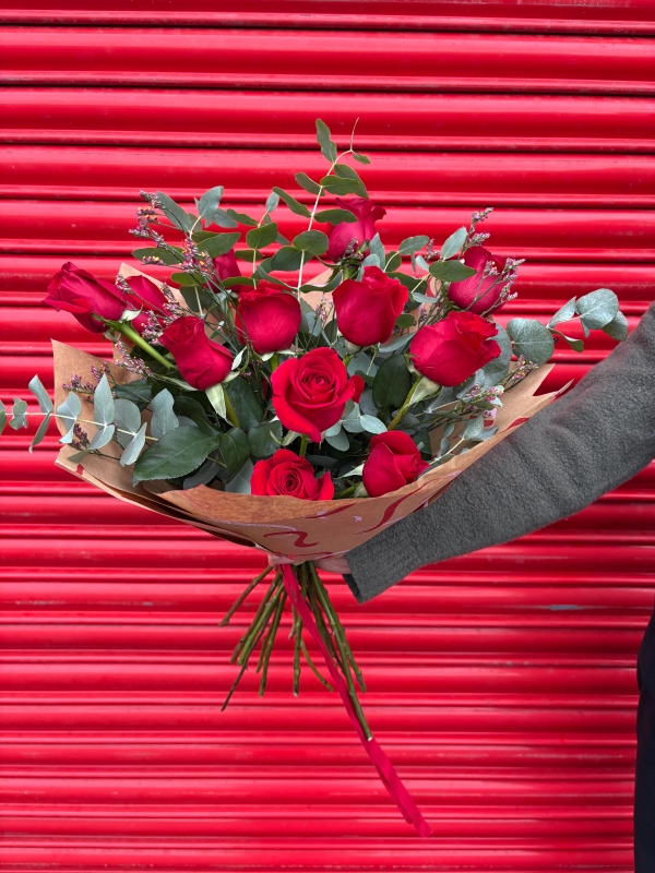 Our Luxury 12 Red Rose Bouquet is the perfect way to express your love for someone special this Valentine's Day. Featuring 12 premium long-stemmed red Roses, seasonal filler and foliage. Gift wrapped in Valentine's paper and finished with luxe ribbon.